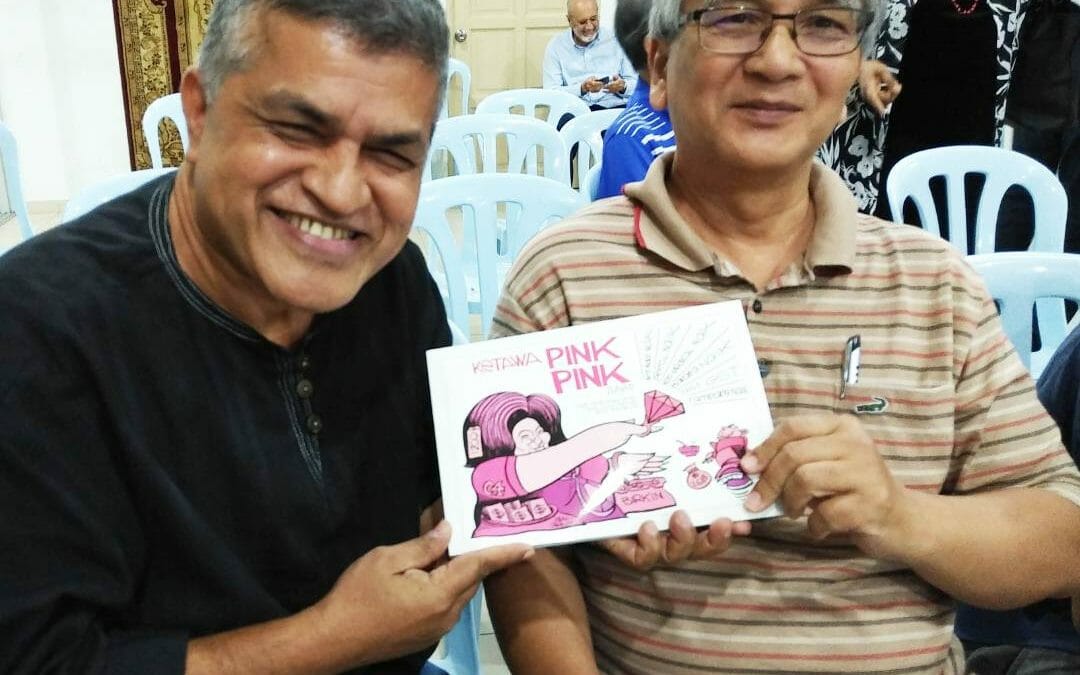 Zunar gifts “KETAWA PINK-PINK” new cartoon book to ex-judge who unbanned his books before