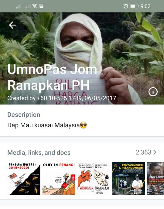 Mereka juga telah menguplaodkan kartun-kartun yang dicuri dan dipalsukan itu di whatsapp group bernama “UmnoPas Jom Ranapkan PH.”