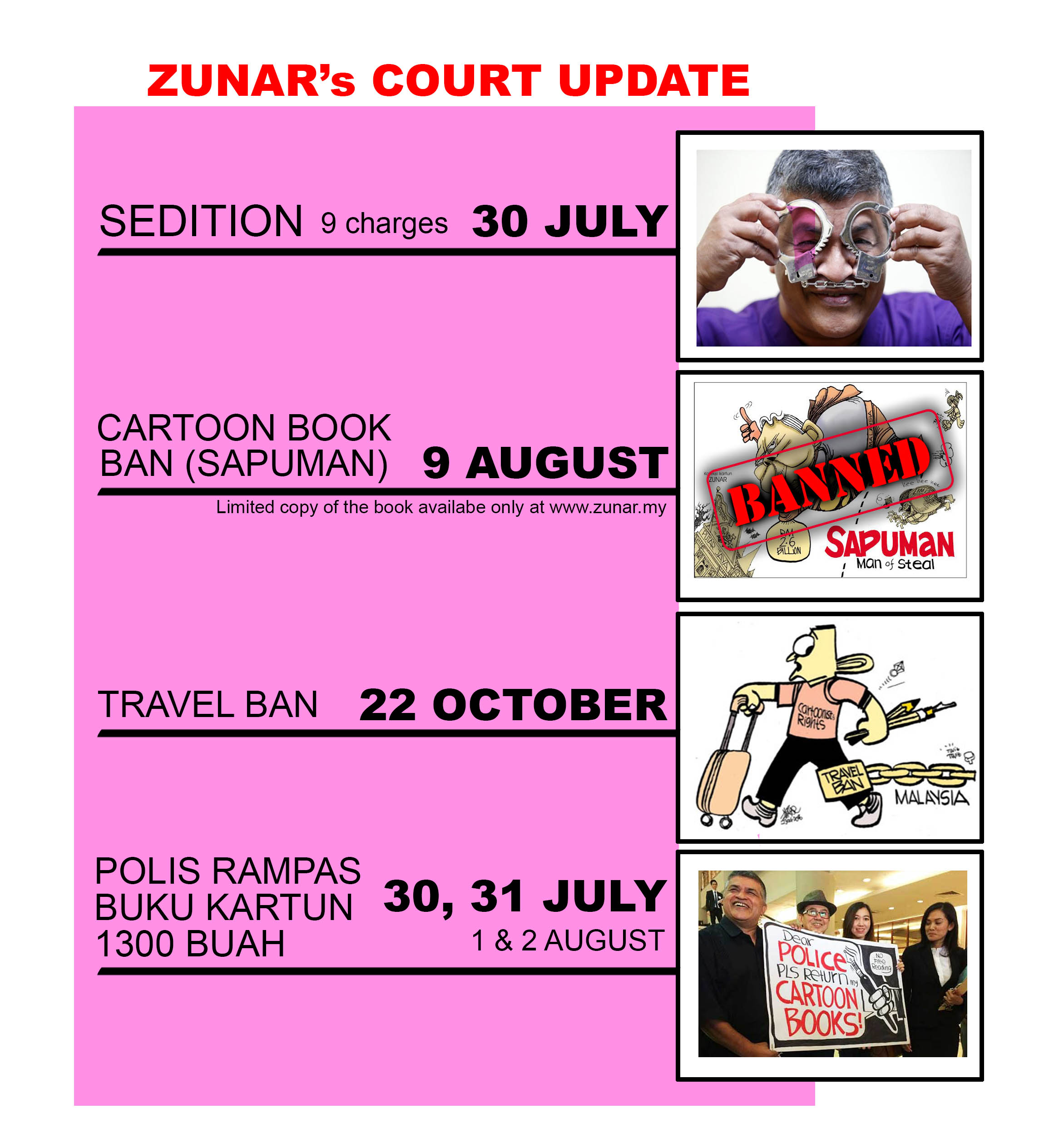 Zunar's Court Case have been updated with the following dates: