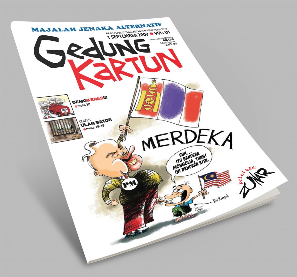 Gedung Kartun is the first political cartoon megazine in Malaysia. Lead by Zunar, several Malaysian cartoonists such as Jonos, Ronasina also involved. Immediately after the magazine hit the street, Zunar’s office was raided by eight officers from the Home Ministry [Kementerian Dalam Negeri or KDN] and 408 copies of Gedung Kartun were seized followed by the banning of the megazine.